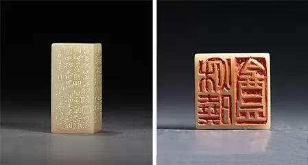臨幕的過(guò)程是艱辛 更要有質(zhì)量,從量變到質(zhì)變,同時(shí)要多動(dòng)腦、多用心,體會(huì)成功印例的理法和技法,對(duì)于范印要知其然,更要知其所以然。每一字、每一面、每一線、每一刀,都要經(jīng)得起推敲,這就是趙熊先生所說(shuō)的要有“道理”。使臨摹時(shí)時(shí)在一種充分理解的前提下進(jìn)行,這樣,方可事半功倍。通過(guò)一定時(shí)間、一定數(shù)量范印的臨摹,對(duì)于金(刀)與石(石章)之間的關(guān)系逐漸也有了理解,逐漸也熟悉了各自的“習(xí)性”,同時(shí)對(duì)于篆刻形式的基本構(gòu)成規(guī)律也有一定的了解。這樣,就可以開(kāi)始進(jìn)入臨幕與創(chuàng)作相結(jié)合的階段,也可稱作“半幕半創(chuàng)”。