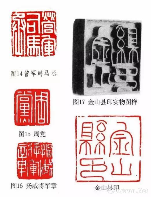 以上不過舉漢代官印的紐別,在這以前和以后,紐式花樣很多,通常還有辟邪紐,獅紐,魚紐,龍紐,蛇紐,鳧紐,兔紐,羊紐,馬紐,圭紐,覆斗紐,瓦紐,壇紐,橋紐,亭紐,錢鈕……等。后世官私印章,既不佩帶,也不一定有紐。
